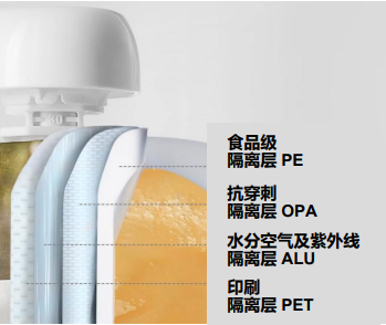 嬰尚果泥采用四層鎖鮮包裝(食品級(jí)隔離層 PE、抗穿刺隔離層 OPA、水分空氣及紫外線隔離層ALU以及印刷隔離層 PET),杜絕了氧氣和細(xì)菌,同時(shí)采用巴氏殺菌工藝,不添加防腐劑也能保鮮,最大程度保留了原材料的營(yíng)養(yǎng)。